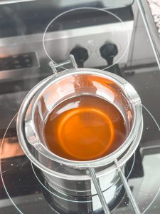 - In a saucepan, fill with a few inches of water and place a heat-safe bowl on top to create a double boiler. Add the shea butter and coconut oil to the bowl. Allow them to melt gently over medium heat, stirring occasionally to combine.
