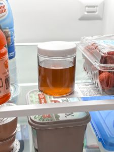 - Pour the liquid balm into a clean glass jar or container. Allow it to cool and solidify at room temperature. This process may take a few hours. 1-2 hours if storing in the fridge.